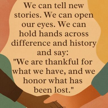 This year, instead of closing our eyes, let’s open them together. We can be thankful for the people around us and honest about the people and histories that are missing. We can hold thankfulness and truth at the same table.